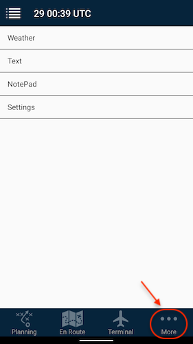 If you are using the app on a phone, the Weather, Text, Notepad and Settings tabs are combined into a More tab: