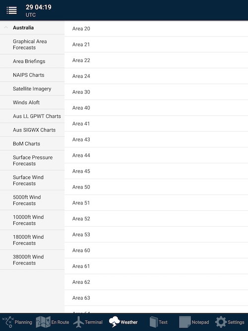 Area Briefings are selected and downloaded here.