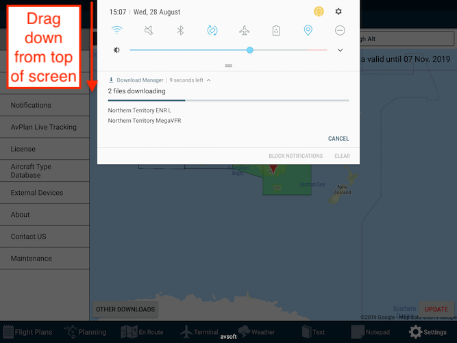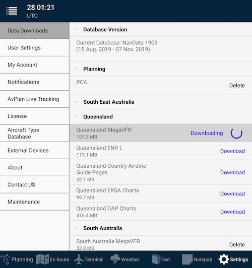 - To download the Mega Maps, ERSA/AIP and/or DAP pages, tap an area on the map and select the DOWNLOAD option. This will download all the required information for that area.
