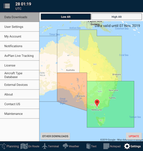 To switch to download the Enroute High map, tap the High Alt option at the top of the page, then tap the area you require.