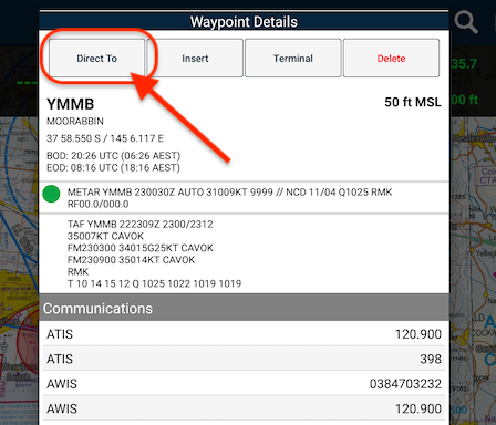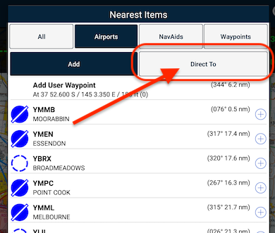 Within AvPlan EFB, there are many ways to initiate a direct-to.