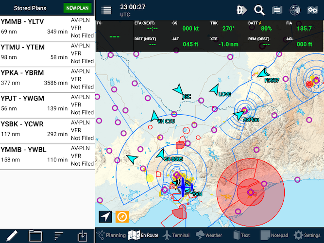 Flight plans that are stored on the device are in black text. Flight plans that are on your AvPlan Cloud profile but are not yet downloaded on to the device are in grey text. To import one of these plans, simply tap on it and the plan will be downloaded and moved to the top of the list.
