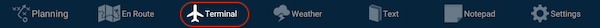 The Weather/NOTAMs page on the Terminal tab (see above) displays the plan details at that flight plan leg, plus applicable NOTAM and decoded TAF/METAR information.