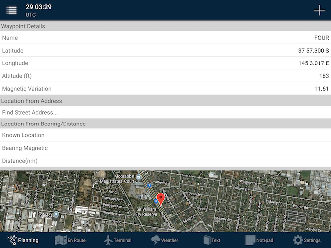 - If you have a bearing and distance from a known aviation location, you can enter it here.