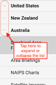 The list for a particular region can be collapsed and opened by tapping the header of the region: