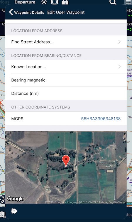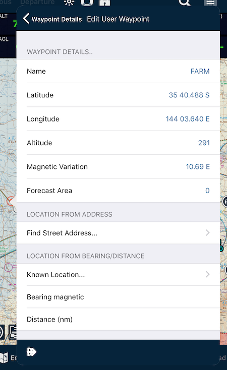 - Select the User Waypoint by tapping the row (anywhere other than the blue plus icon).