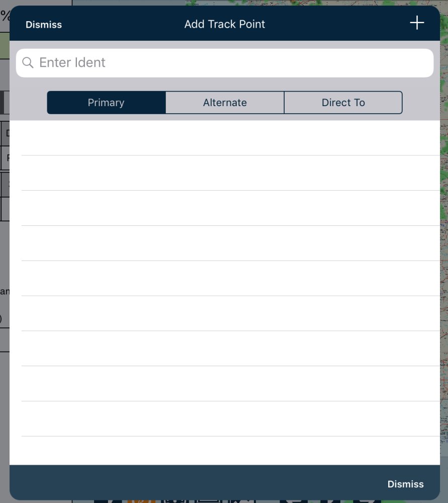 - The Primary/Alternate/Direct To selection changes whether the waypoint added is a primary tracking point, or part of the track to the alternate aerodrome. Direct To enables direct tracking to that point.