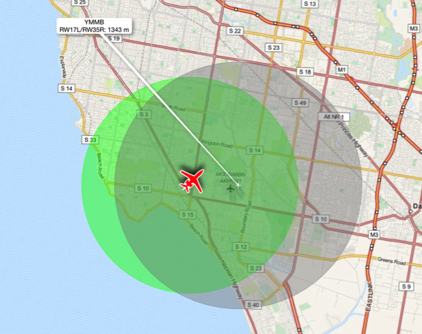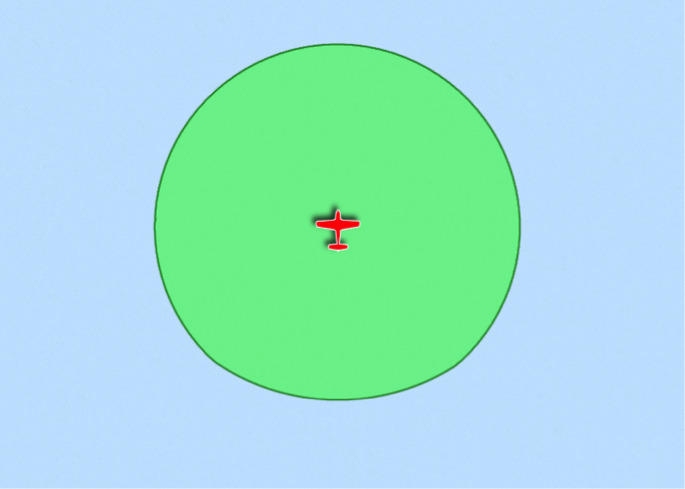 Airfield and aircraft glide envelope overlapNote that in the above example, the glide envelope is almost circular due to little wind or terrain influence.