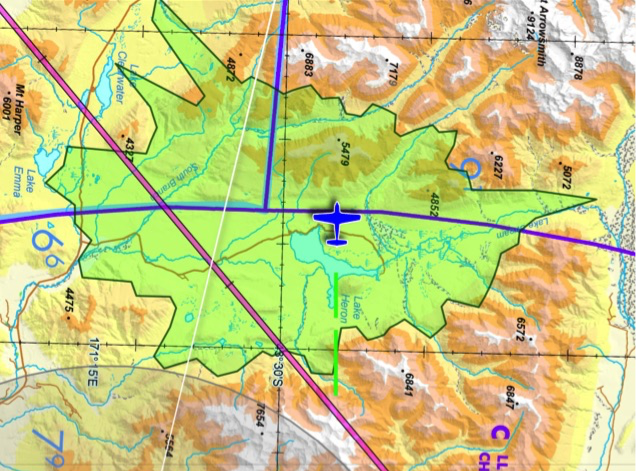 This green dynamic shape takes into consideration aircraft glide ratio, wind and terrain to derive and display an area that your aircraft could theoretically reach in at a manoeuvring height of 1500 feet AGL – if placed into a glide at this very moment.