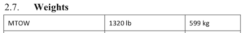 So, the only other information you need to obtain is the empty weight of the aircraft. For the purposes of the example, we will use 306 kg.