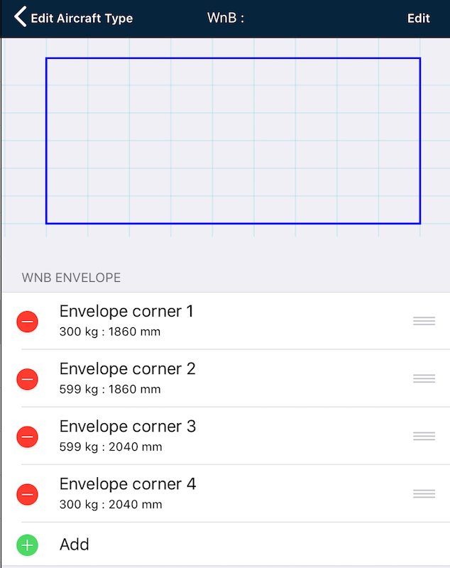 - Tap Settings > Aircraft Type Database > [your type] > Weight and Balance.