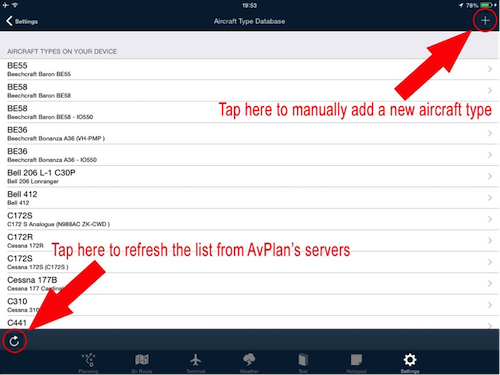 - Tap Settings > Aircraft Type Database to enter the Aircraft Type Database.