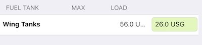 In the above example there is currently 26 USG on board. To fill the tank full of fuel: