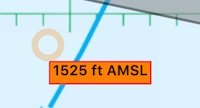 Highest terrain is circled in orange, with the corresponding elevation (feet AMSL) |