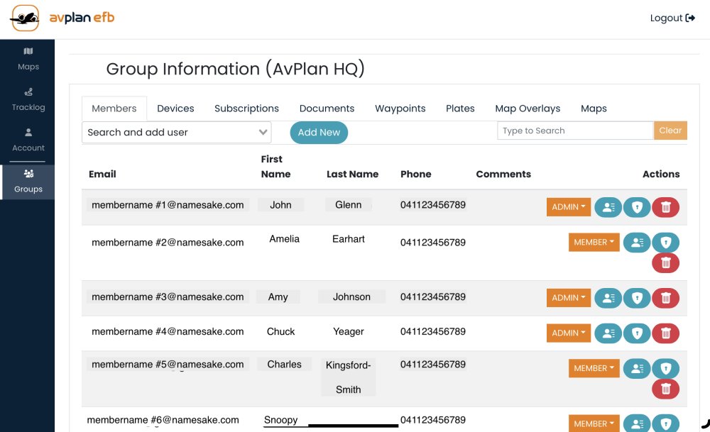 To view all available groups tap on the Groups action at the top left corner of the window. All of the groups that you are a member of (whether or not you are the admin) will be displayed along with your status within each; (you will either be an ordinary member, a group admin, or a dispatcher. If you are an admin for the group, here will be a Manage button beside your status indicator.